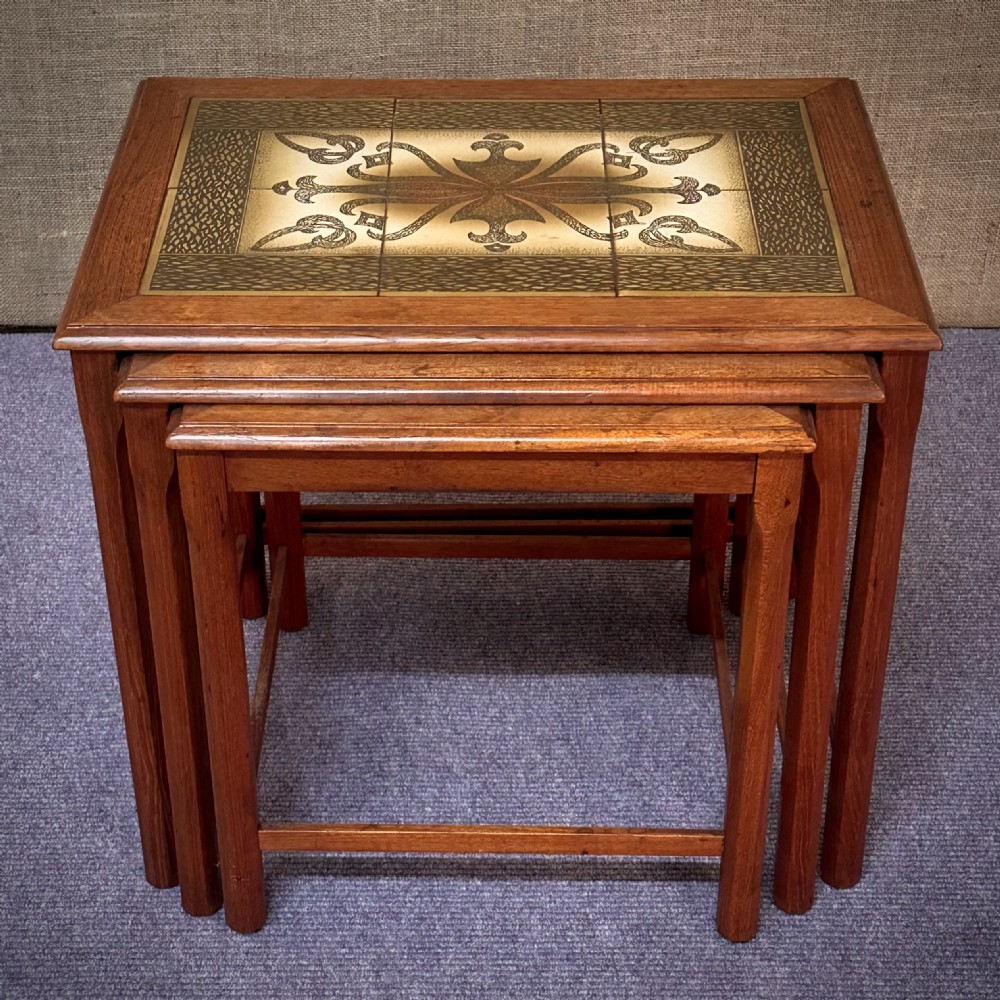 A lovely tiled top nest of three tables. We date these tables to the second half of the 20th century.