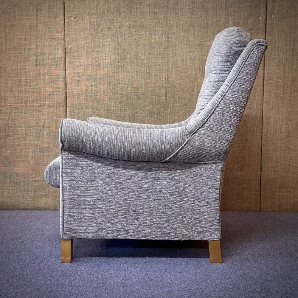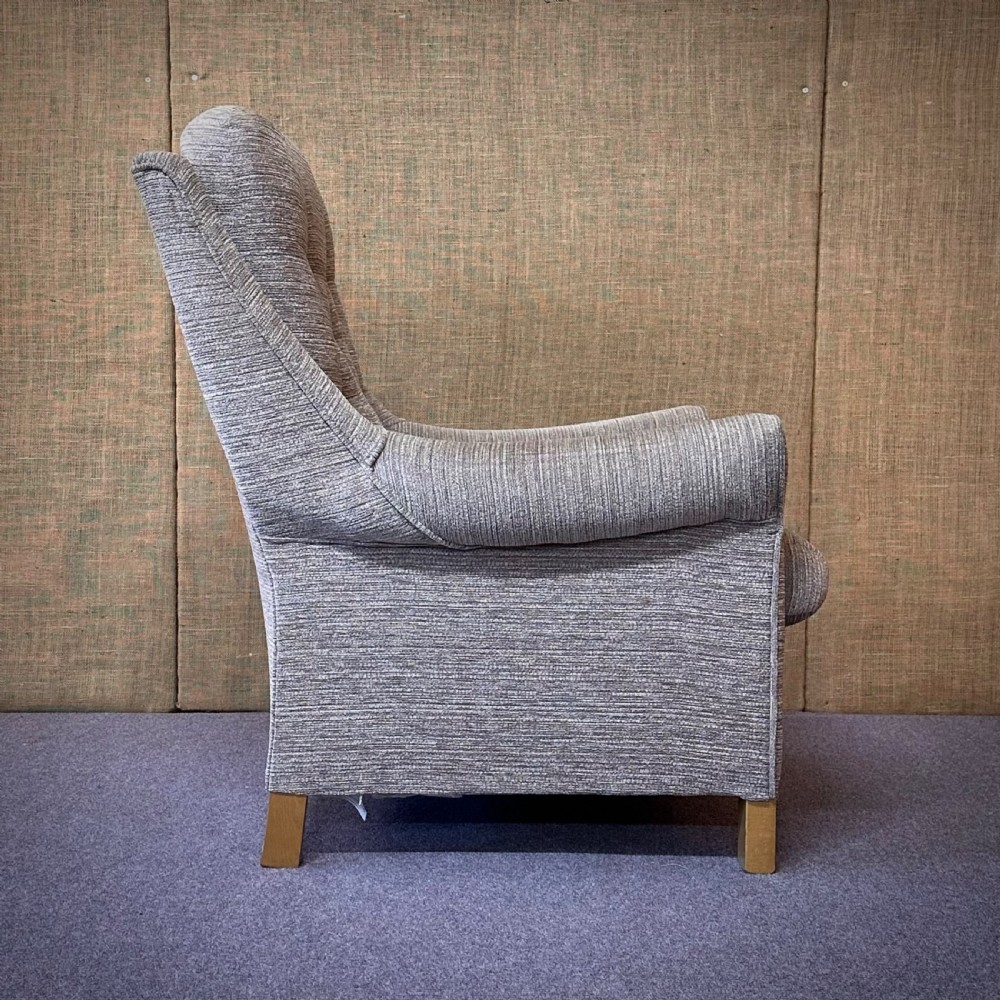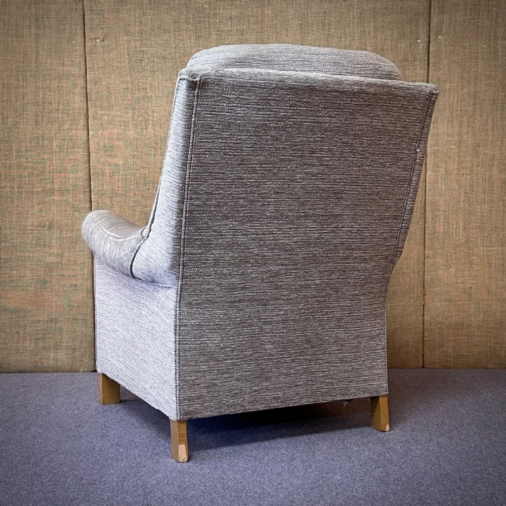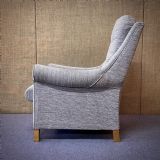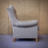 A lovely Royams armchair upholstered in a textured grey fabric. The seat cushion is removable.