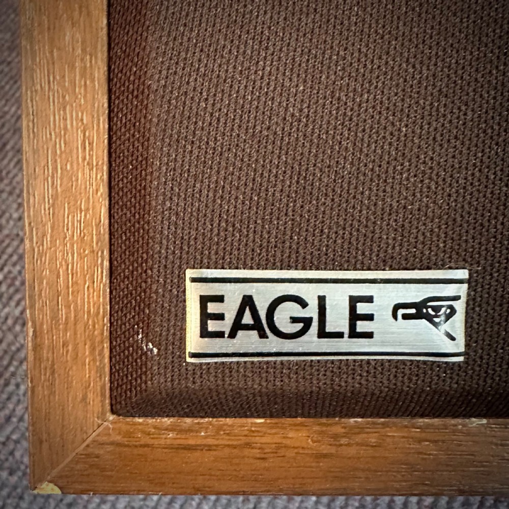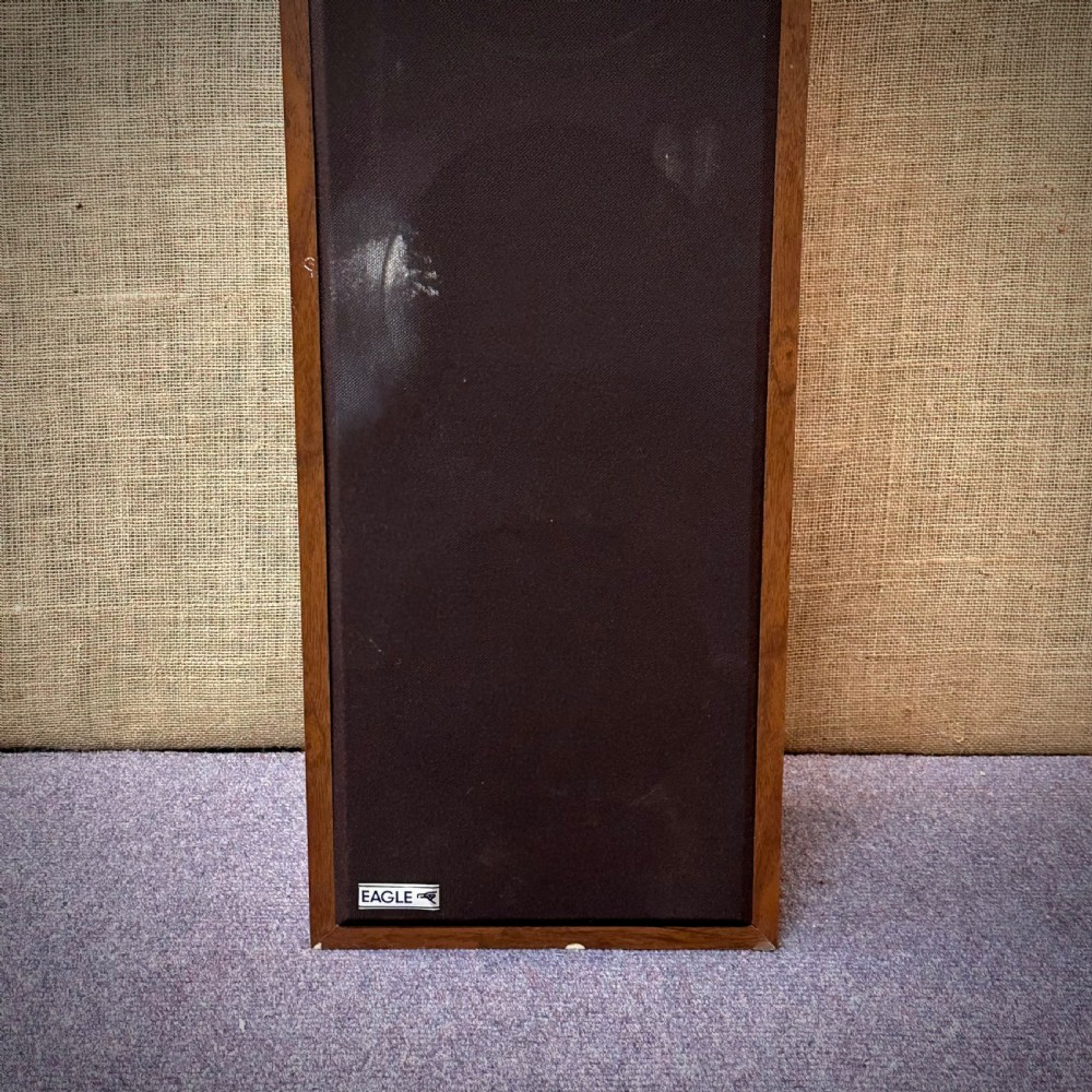 The speakers remain in good solid condition with minor surface markings commensurate with age and usage. One speaker is missing the ‘Eagle’ label to base. There are a few veneer chips to some edges. One speaker has a little paint stain.