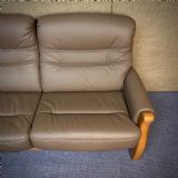 Brown Leather Two Seater Oak Framed Couch Sofa