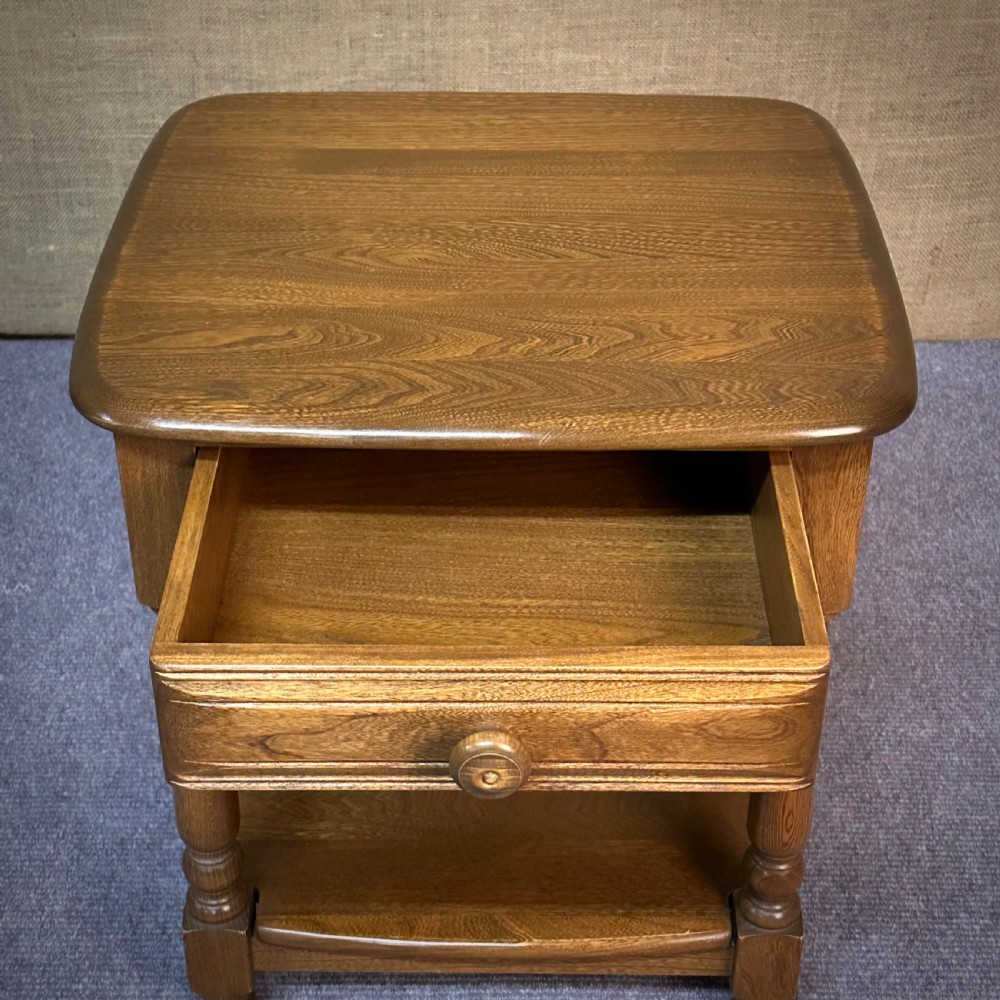 Attractive Ercol Elm Golden Dawn Lamp Side Table With Drawer