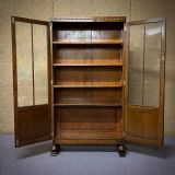 Attractive Large Antique Oak Glazed Two Door Bookcase Cabinet