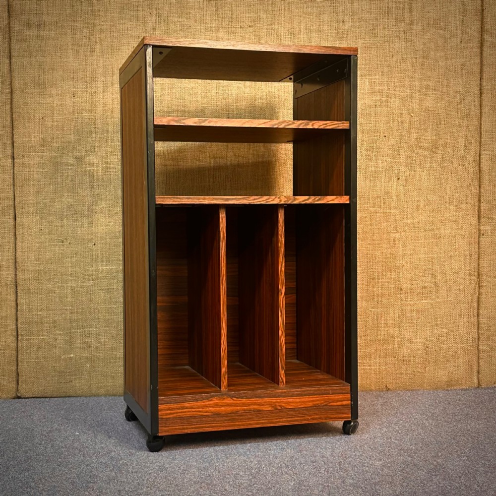 Vintage Mid Century Slender Rosewood Effect Record Player Media Cabinet
