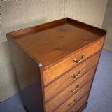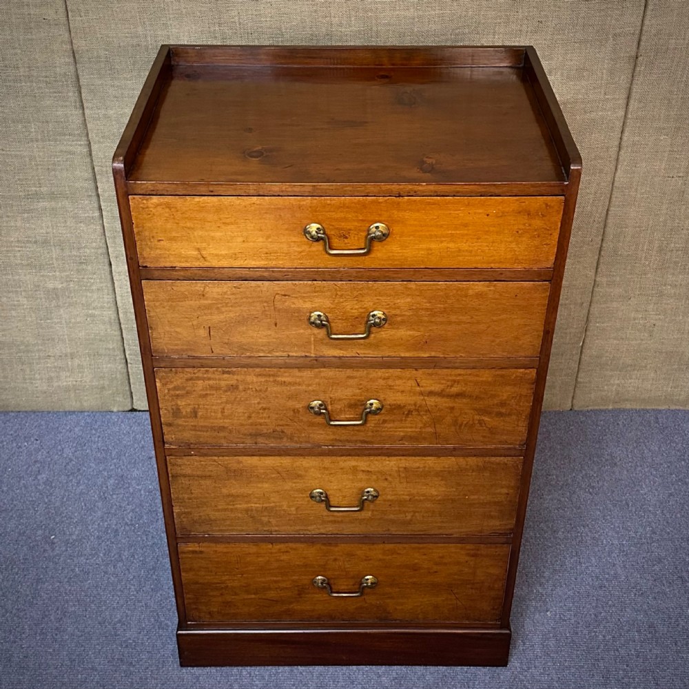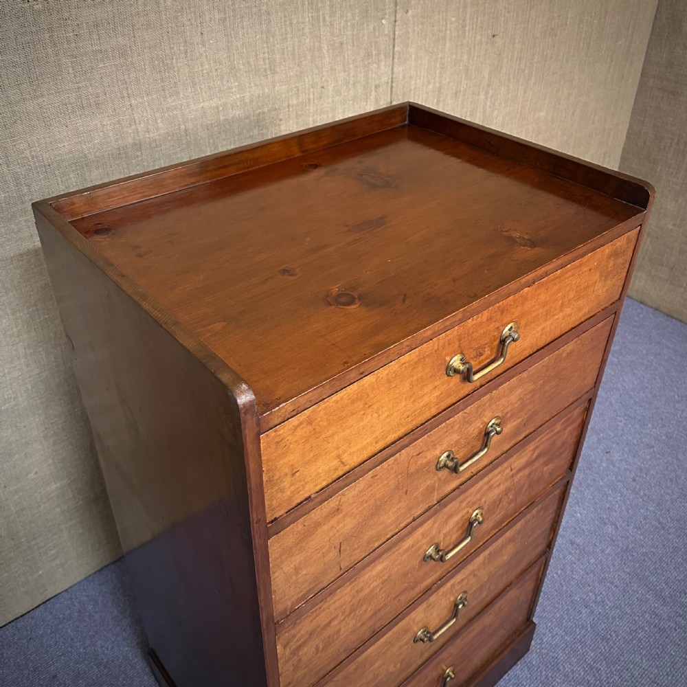 A lovely pine and mahogany chest of drawers with gallery back. We date this chest of drawers to the late 19th century.