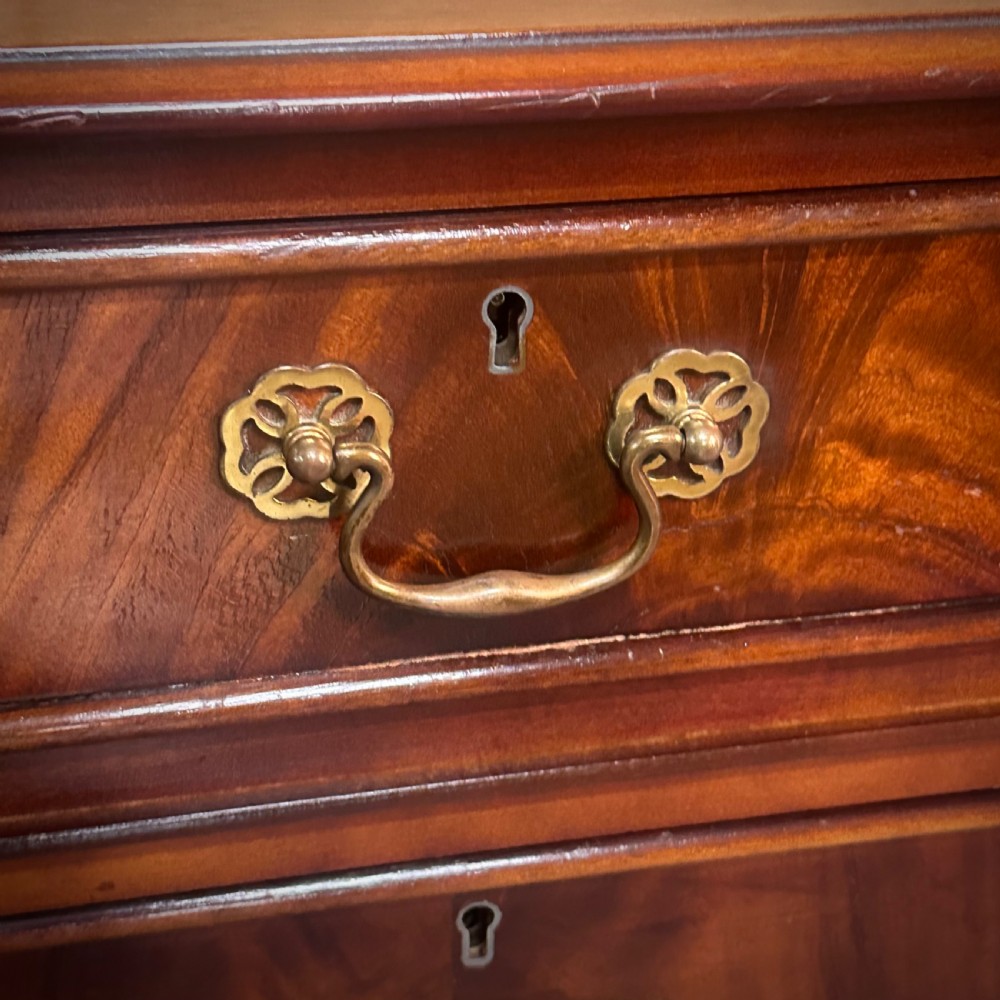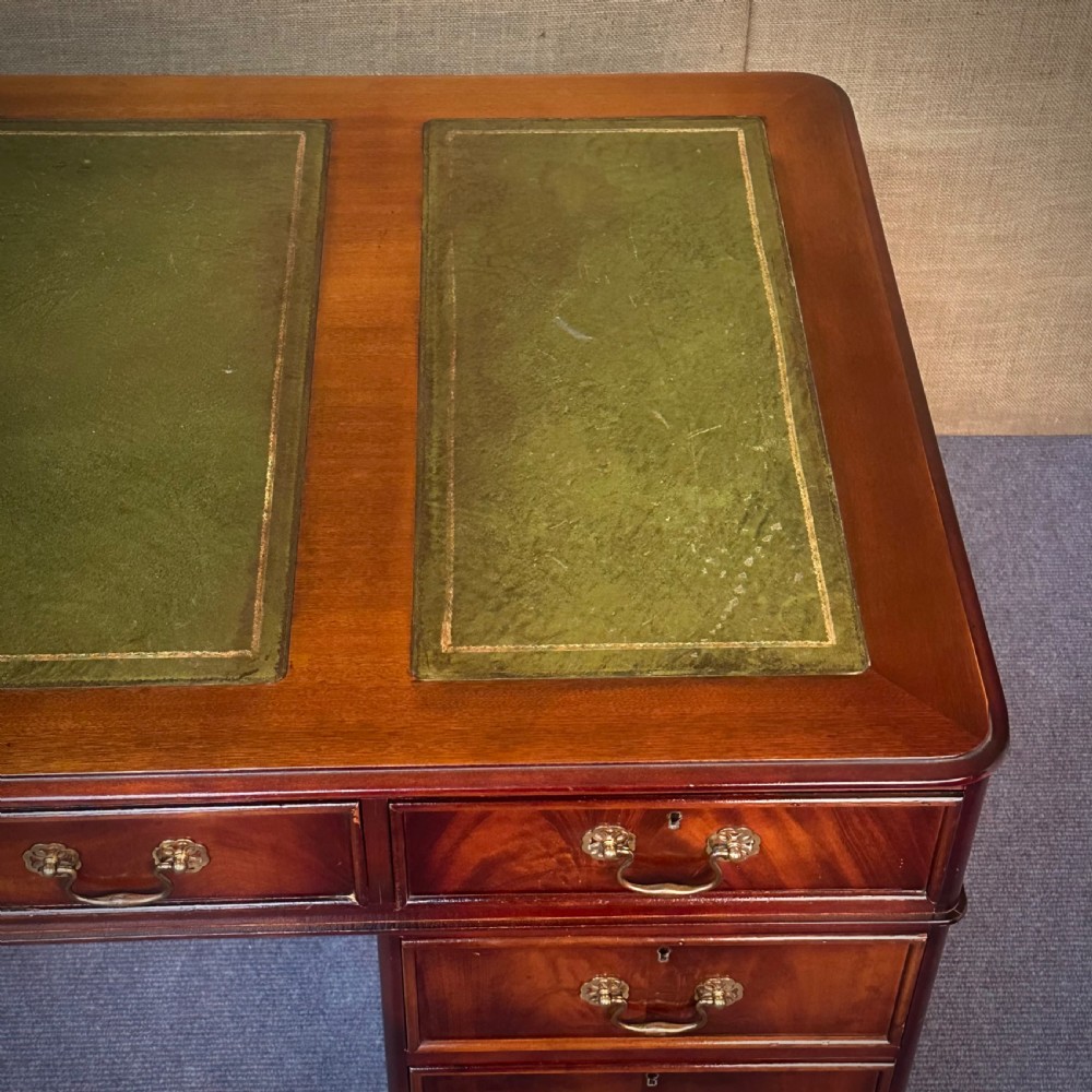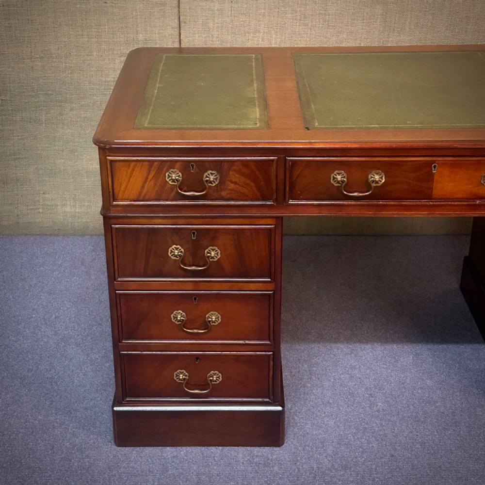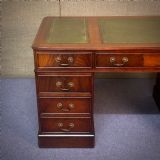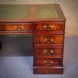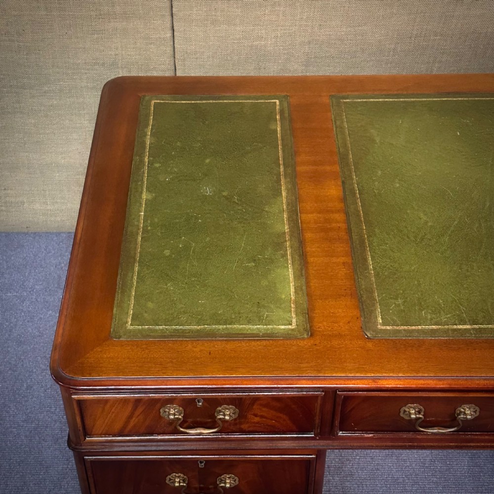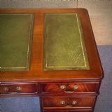 A lovely mahogany desk with green leather insets. We date this desk to the second half of the 20th century.