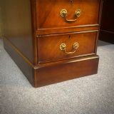The top drawers are fitted with locks (key is supplied). The top surface of the desk is fitted with green leather inserts.