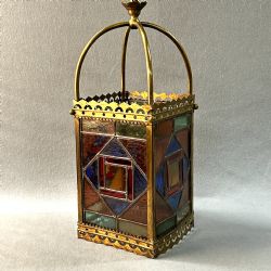 This lovely lamp remains in very good solid condition with only minor surface markings commensurate with age and usage. There is some lead missing on the windows. The lamp would need to be rewired for future use.