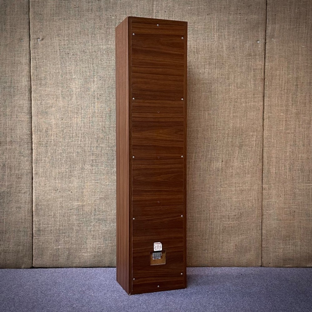 The speakers remain in good solid condition with minor surface markings commensurate with age and usage. One speaker is missing the ‘Eagle’ label to base. There are a few veneer chips to some edges. One speaker has a little paint stain.
