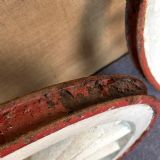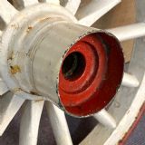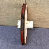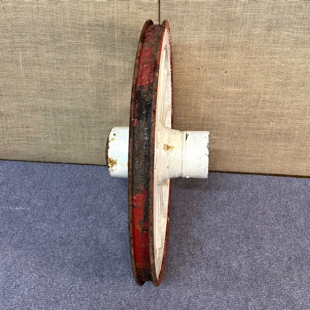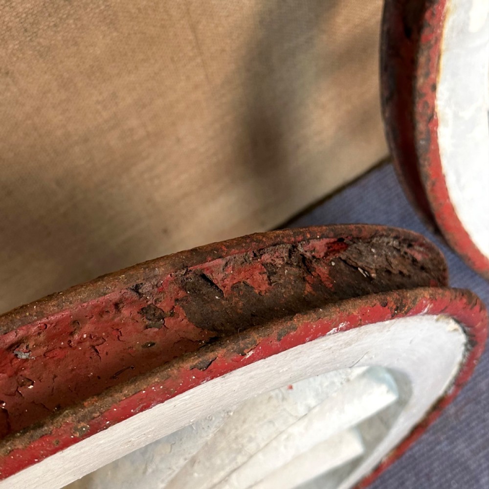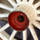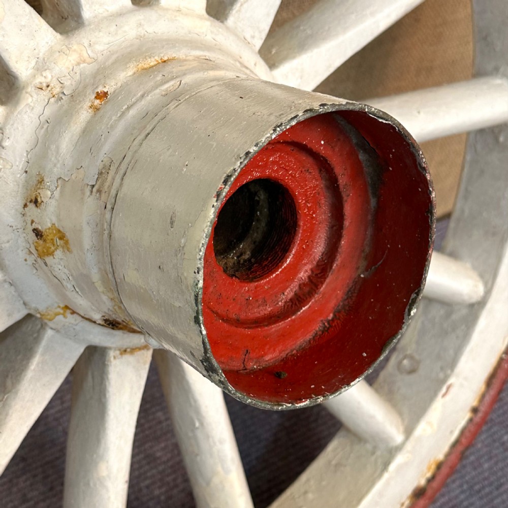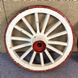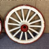 A lovely pair of heavy antique painted cast iron and wood wheels.