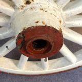 This pair of wheels remains in good solid condition. As you can see in the pictures there is some oxidation to the metal rims.