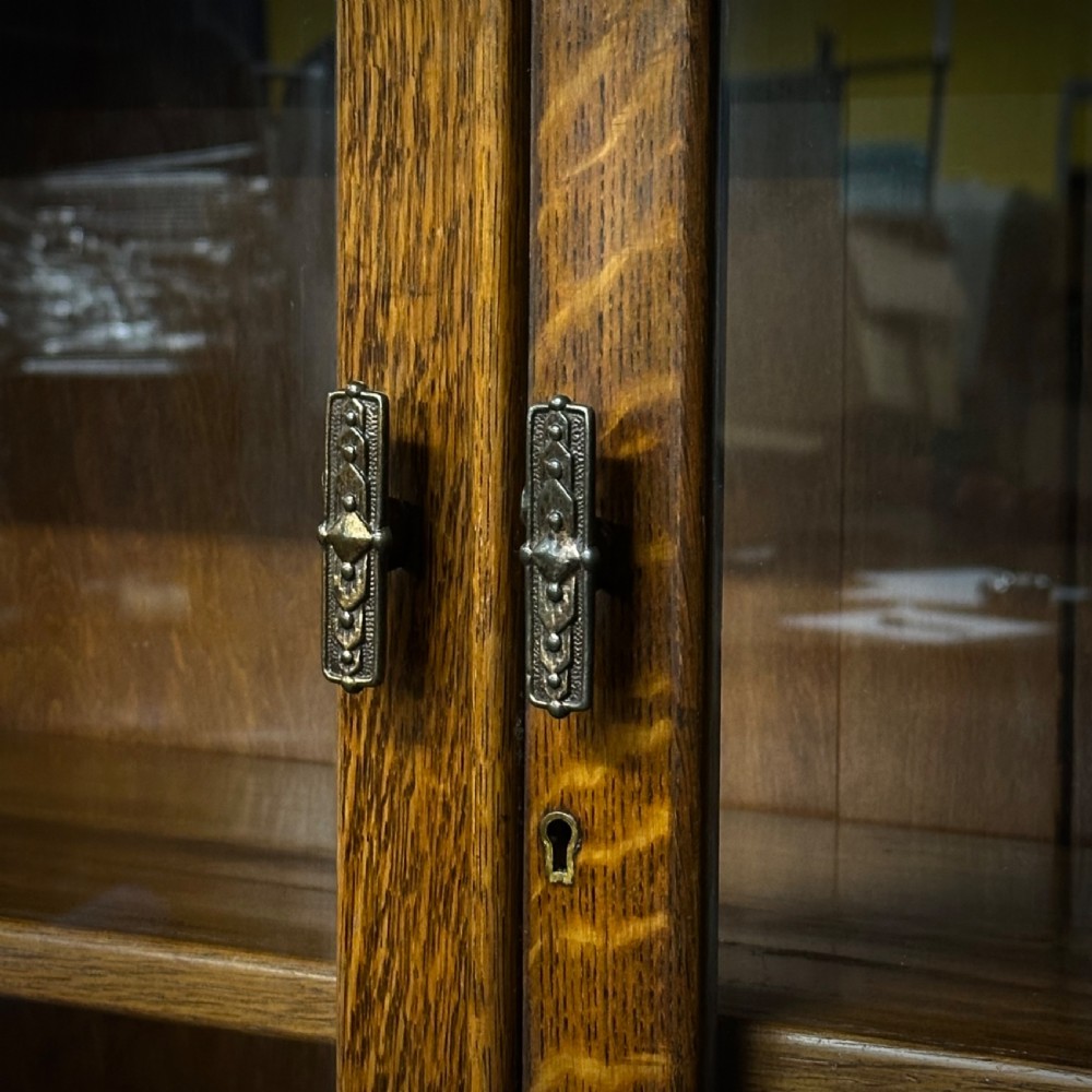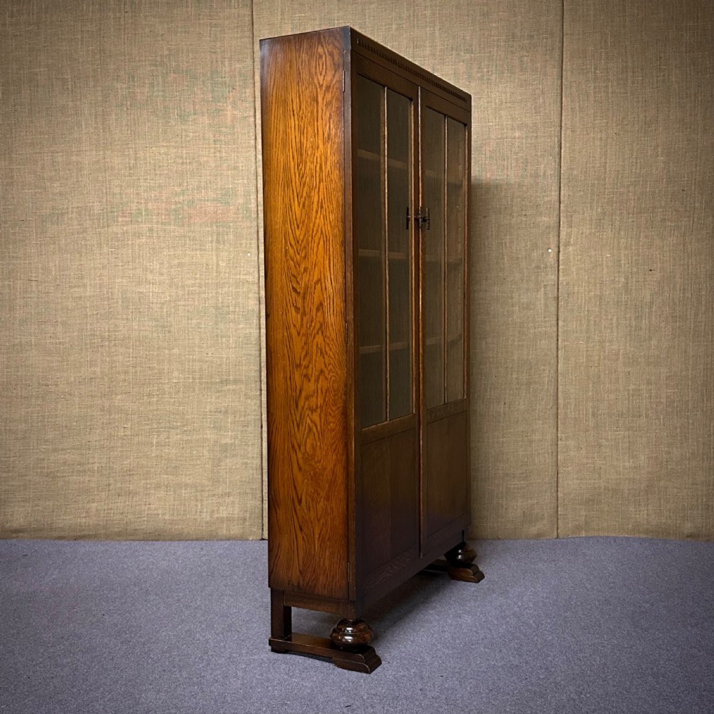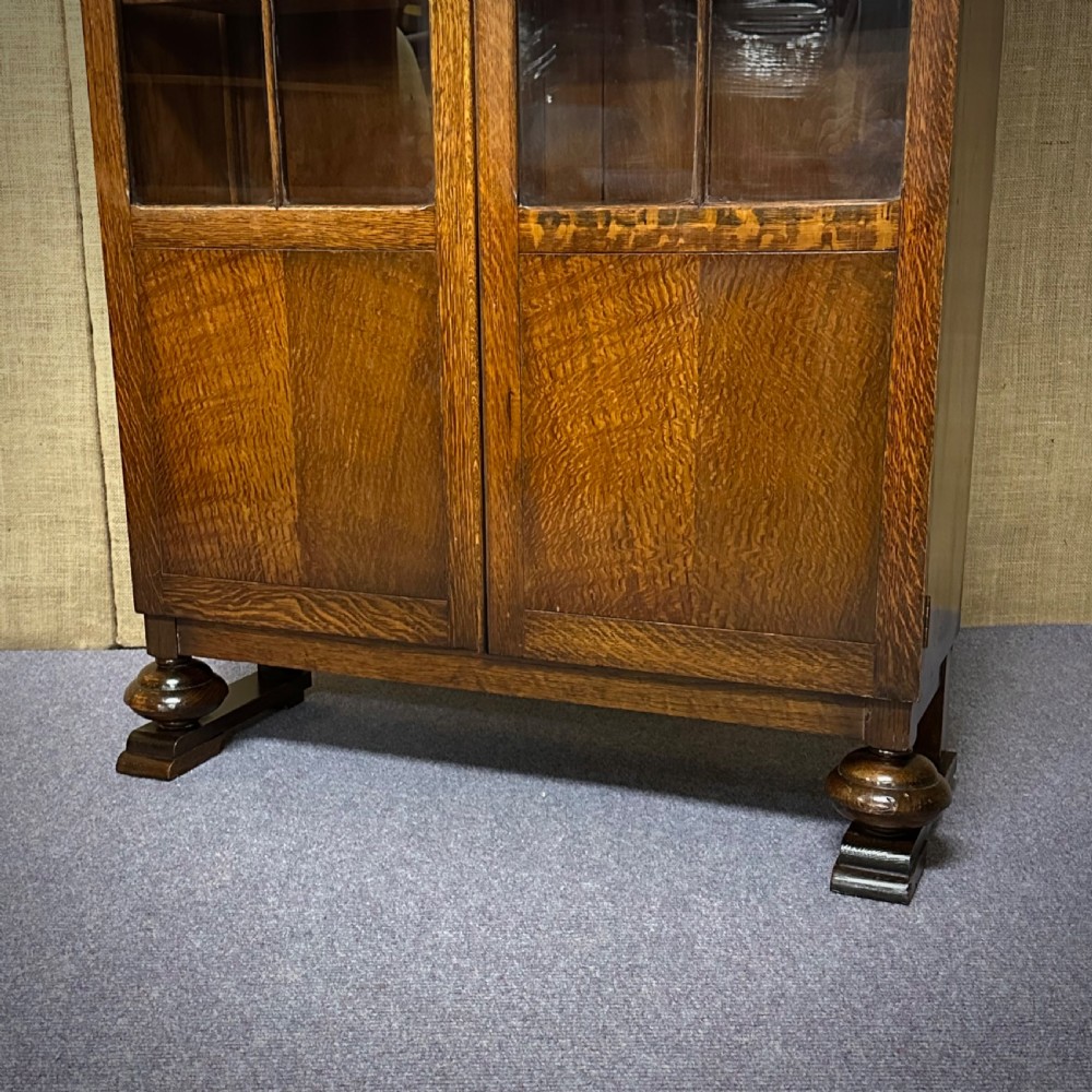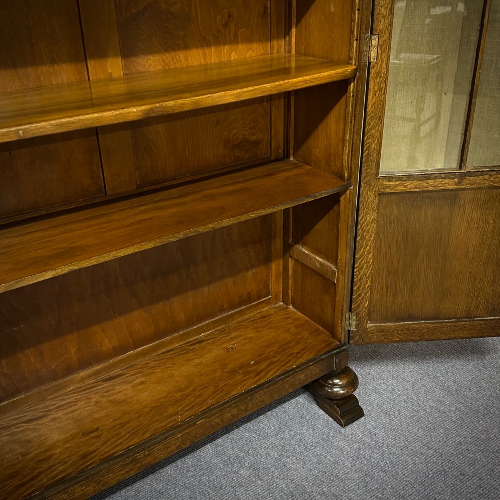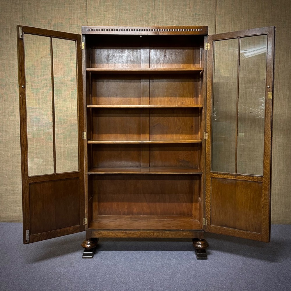 Attractive Large Antique Oak Glazed Two Door Bookcase Cabinet