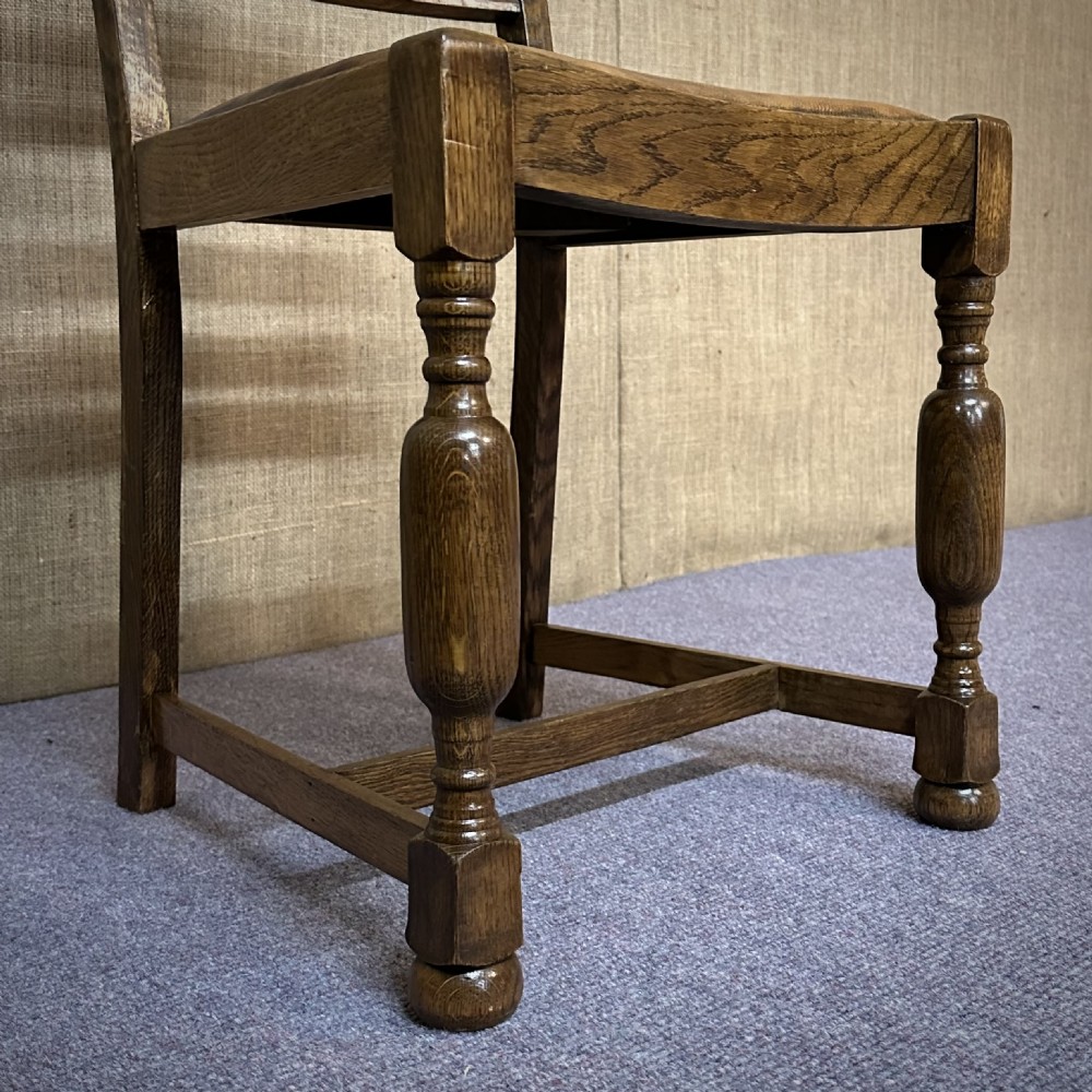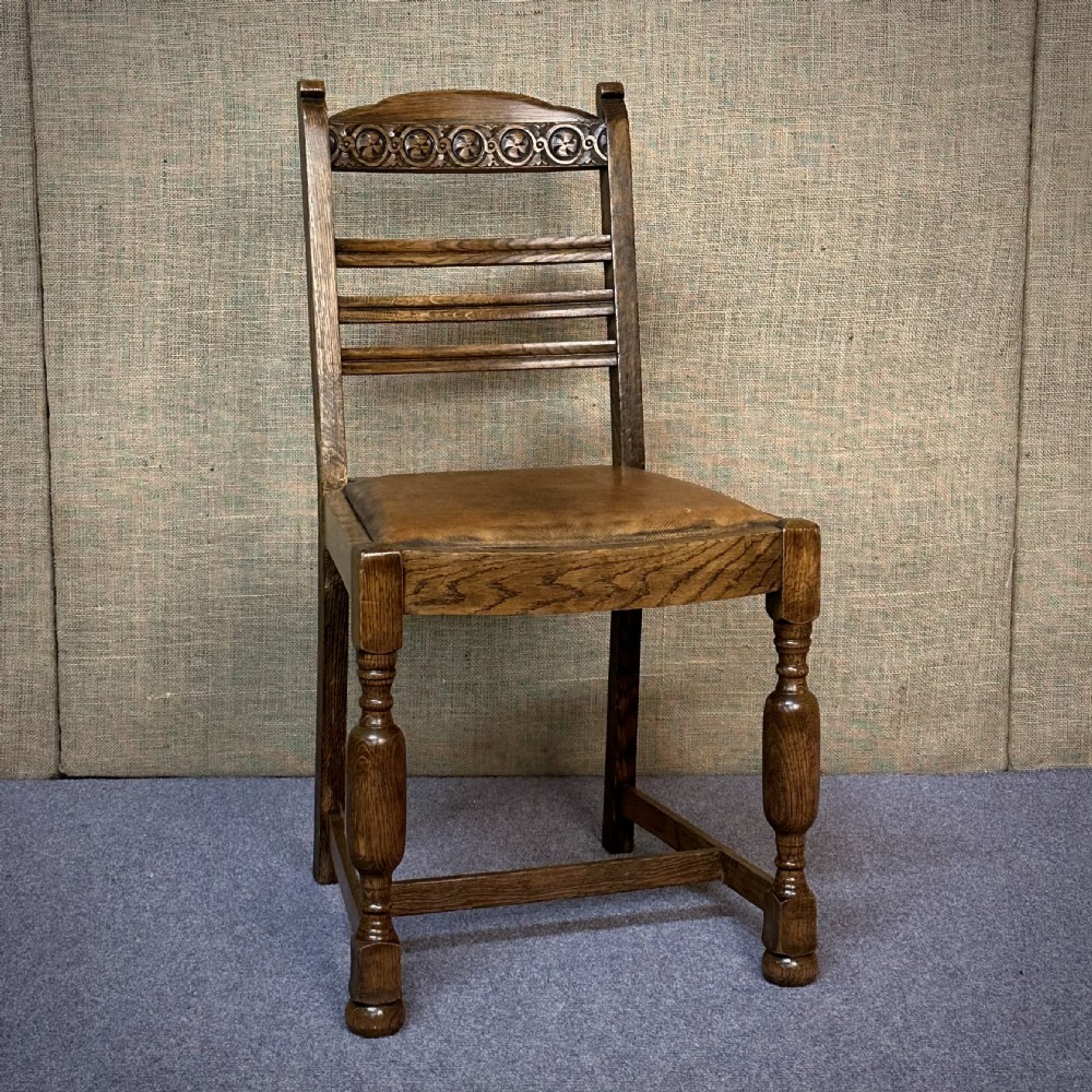 A lovely set of six oak dining chairs. We date these dining chairs to the early 20th century.