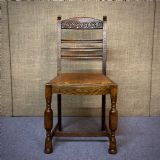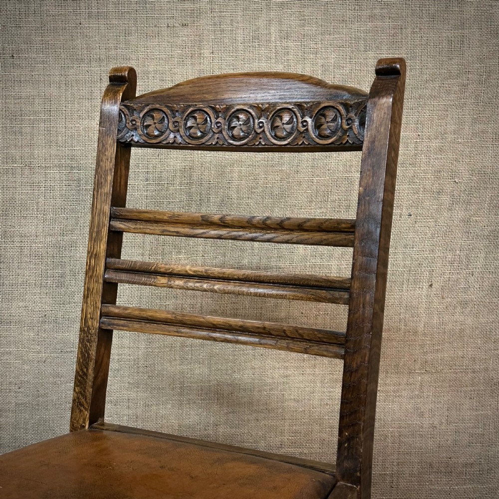 Attractive Set of Six Antique Oak and Leather Dining Chairs