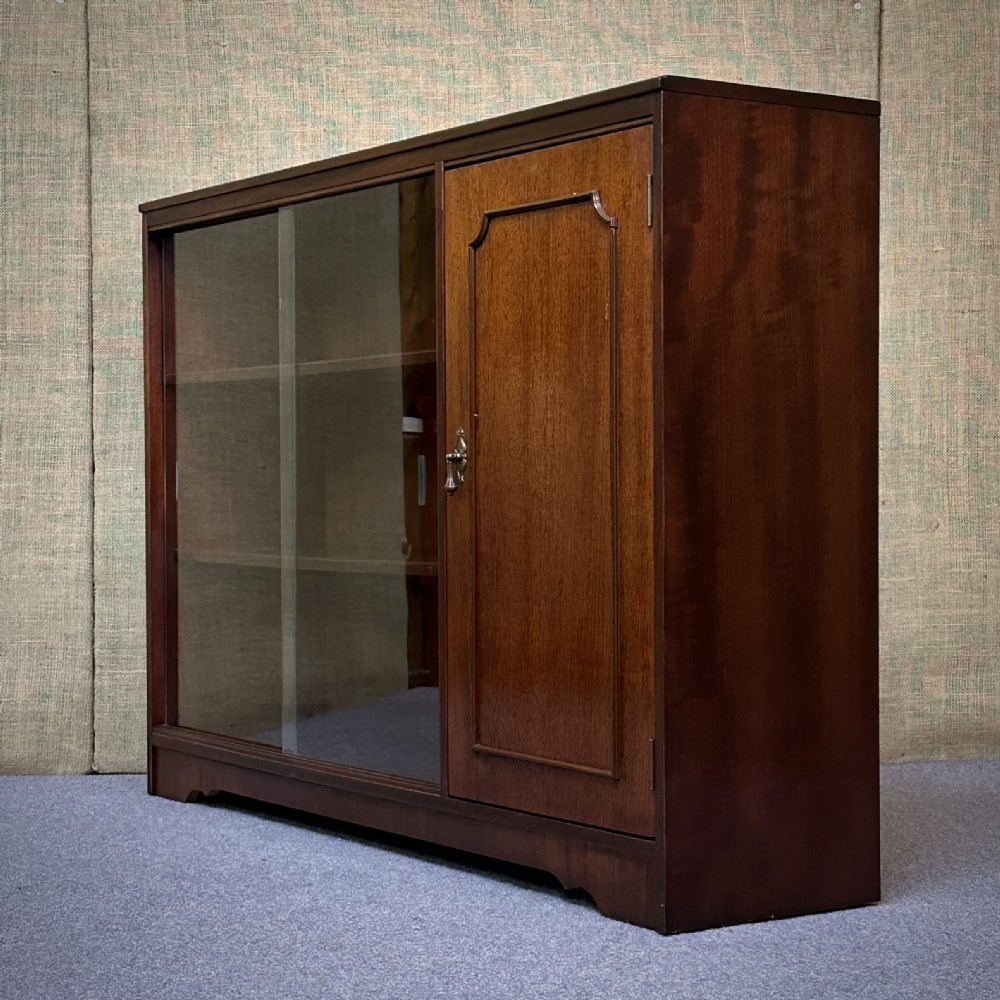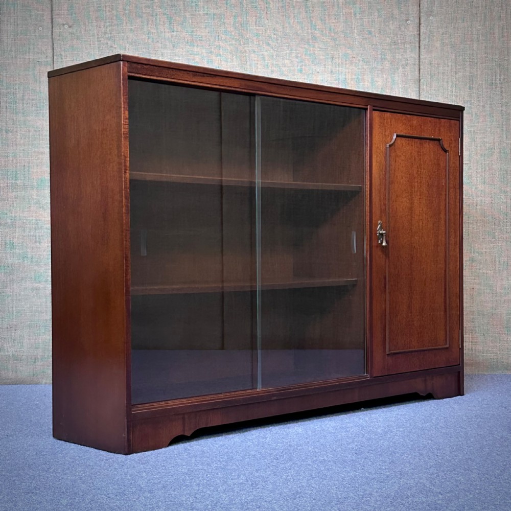 Attractive Vintage Mahogany Glazed Sliding Door Bookcase