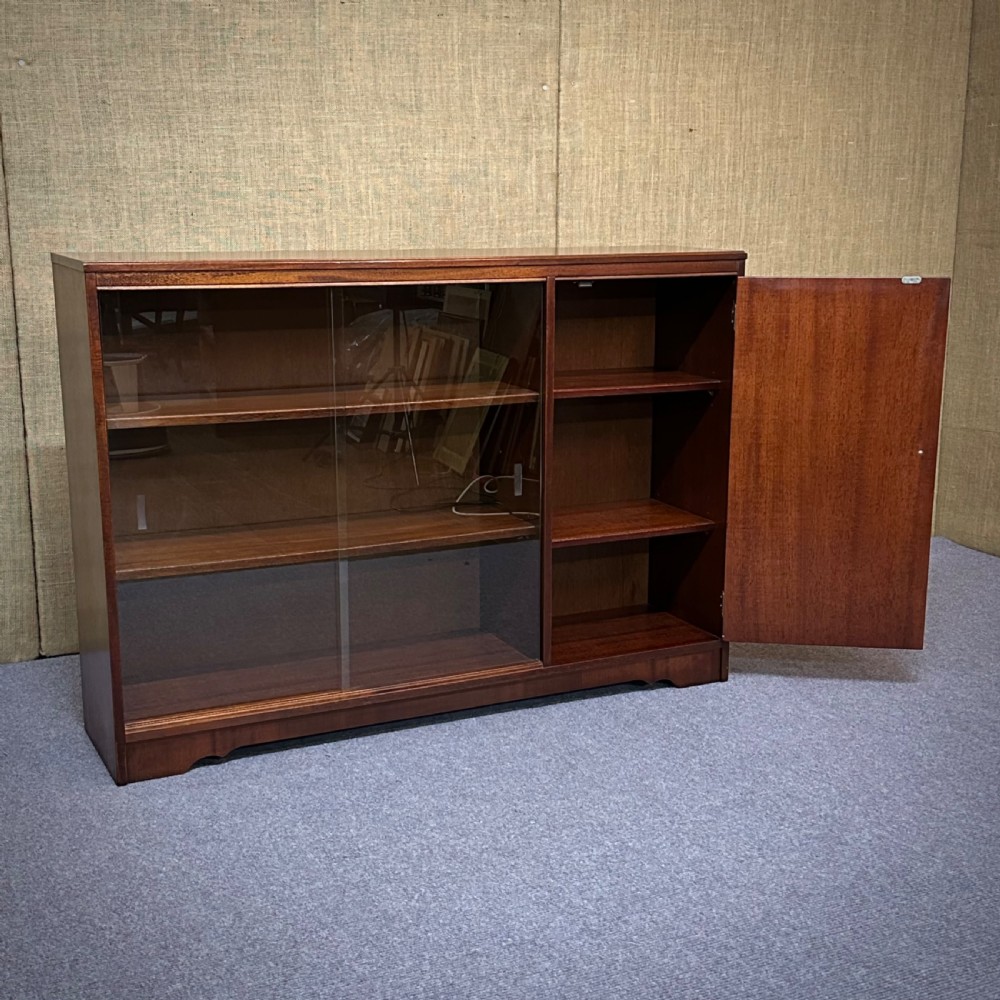 attractive vintage mahogany glazed sliding door bookcase