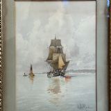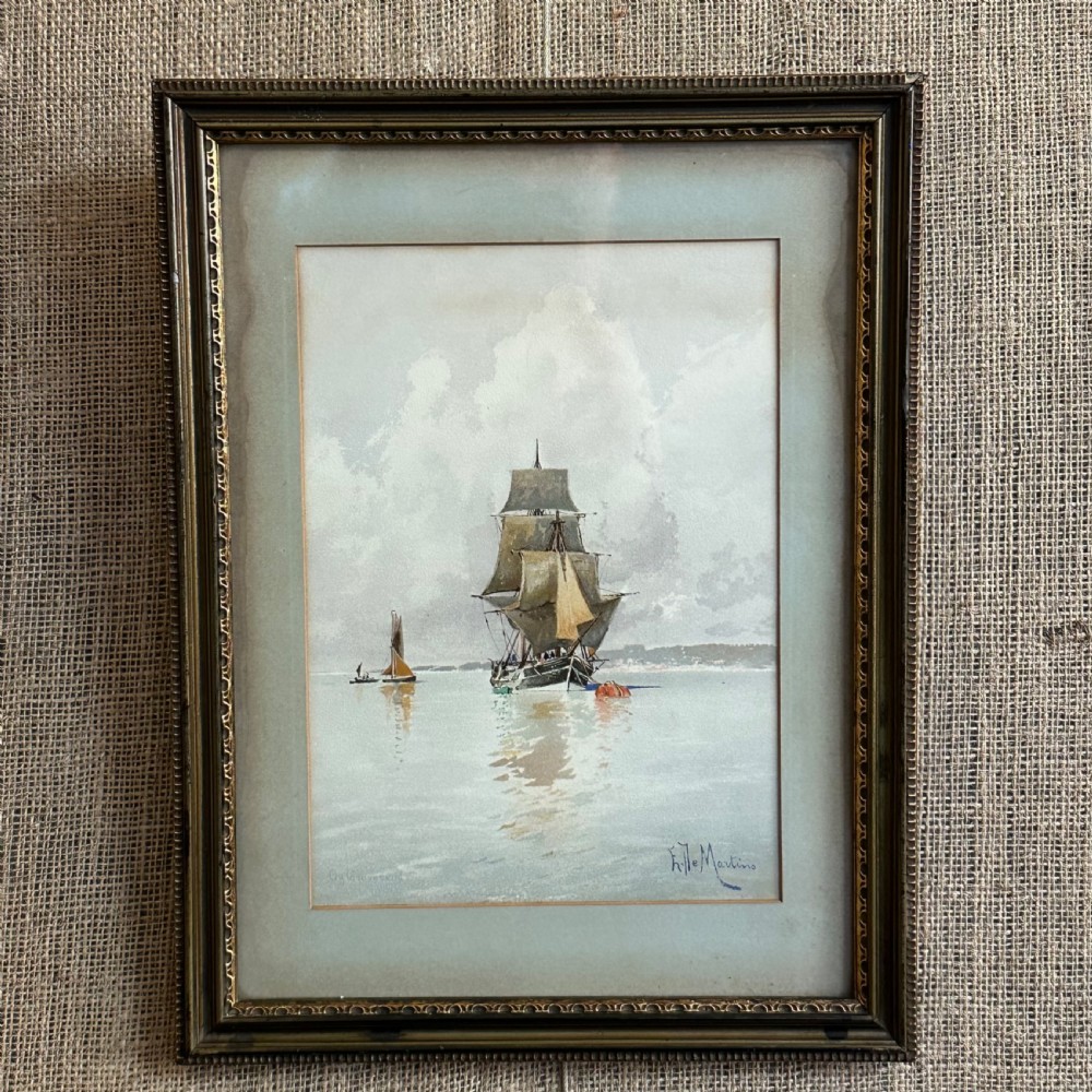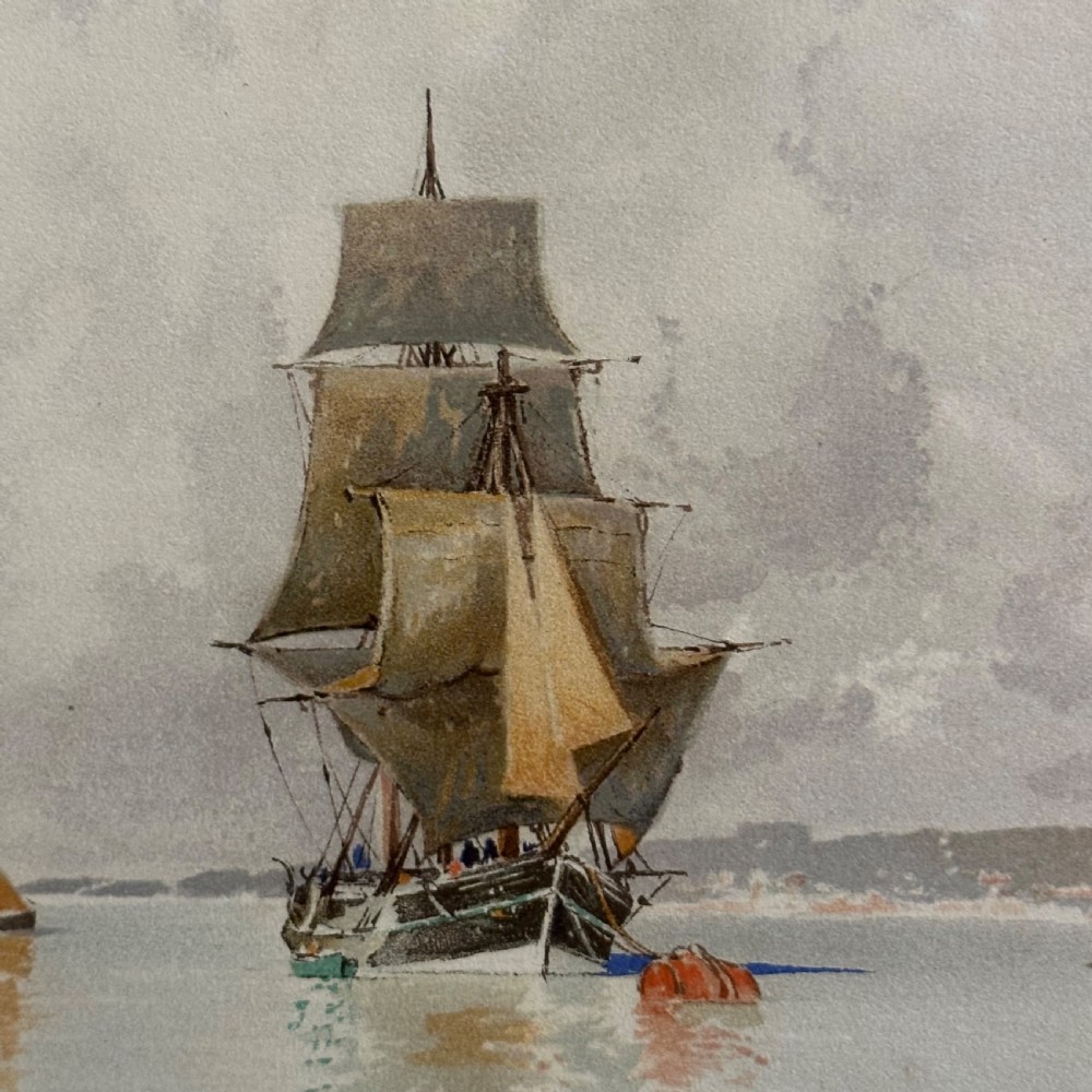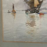antique pair of elle martino framed prints depicting sailing boats on thames and gravesend