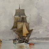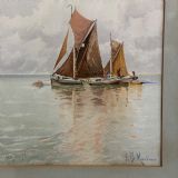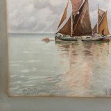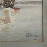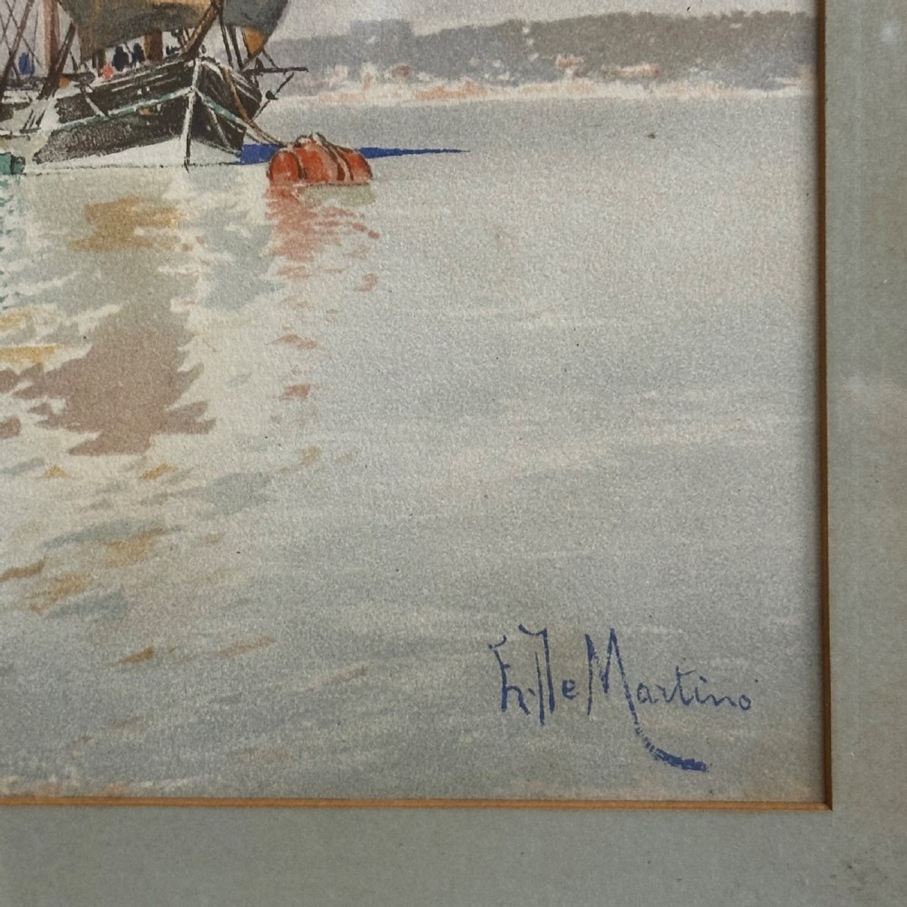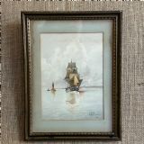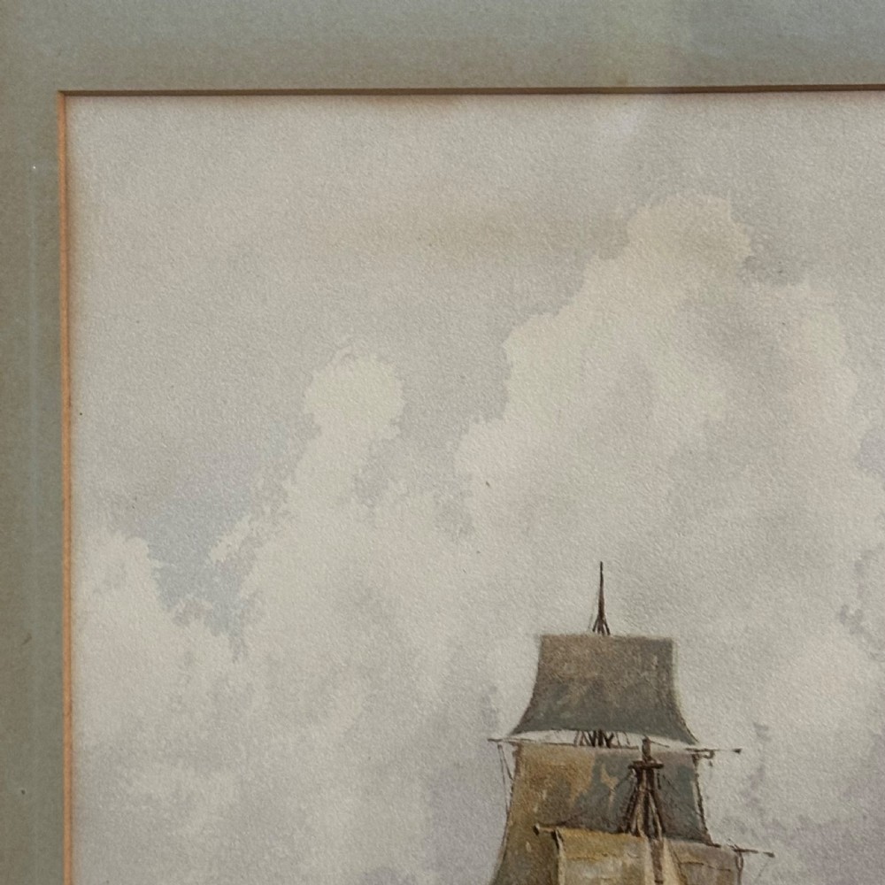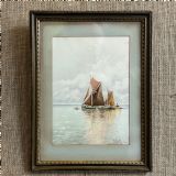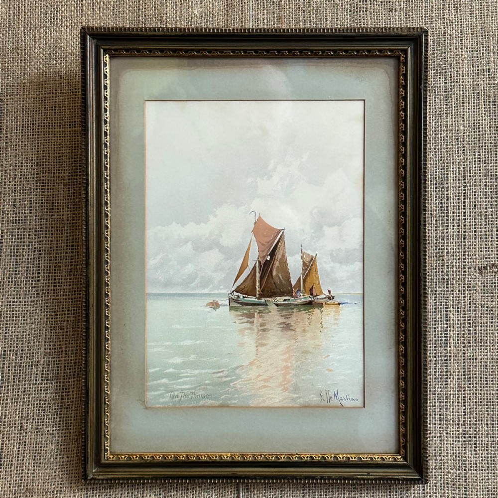 Antique Pair of Elle Martino Framed Prints Depicting Sailing Boats on Thames and Gravesend