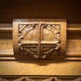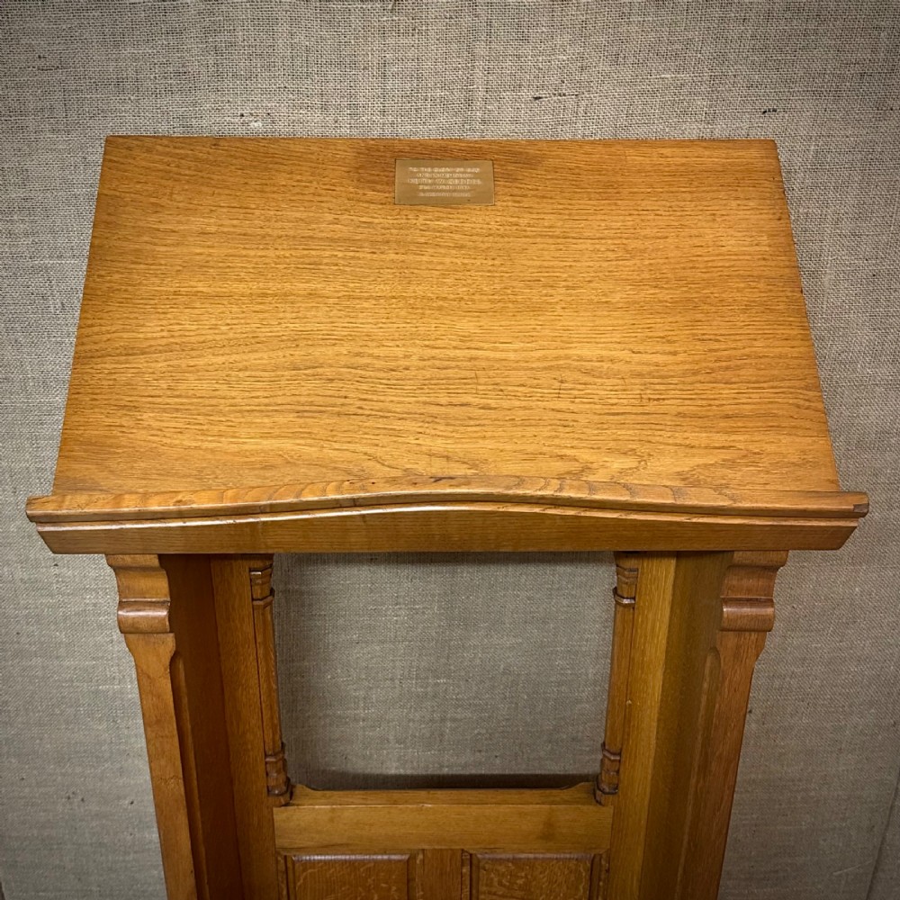 A lovely heavy carved oak lectern. We date this lectern to the 1940’s. There is a small presentation plaque dated to 1947.