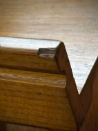 This lovely oak lectern remains in a good solid condition with only minor surface markings commensurate with age and usage. There is a chip and some wear to the edges of the reading surface.