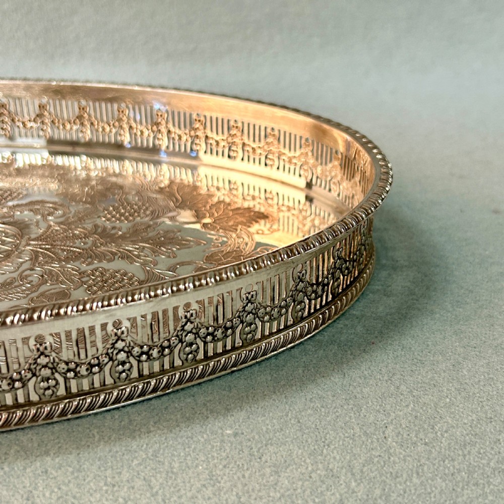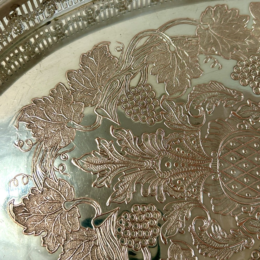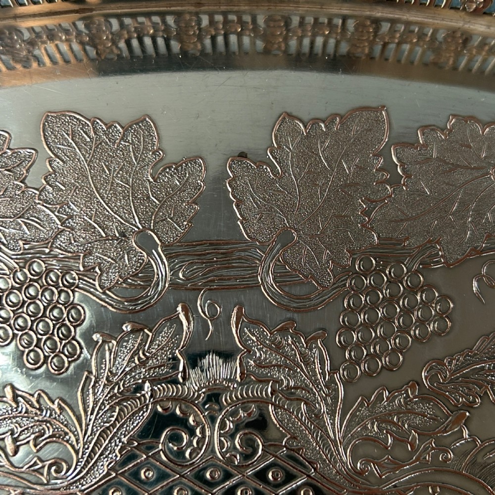 Attractive silver plated serving tray with a grapevine design by Viners of Sheffield.