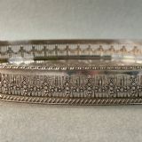 This is electroplated silver on a copper base. You will notice the flowers are copper.