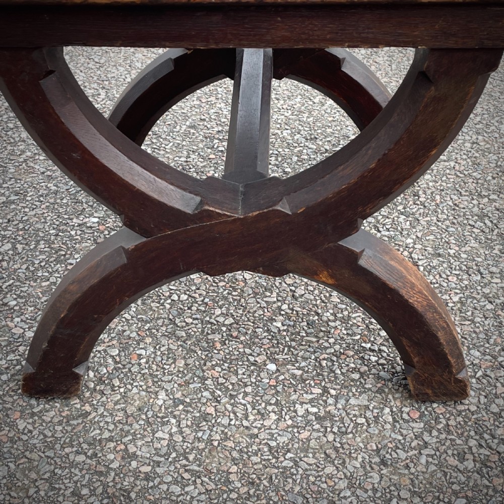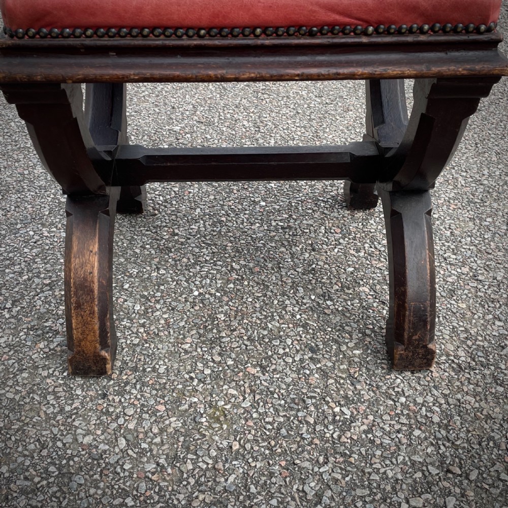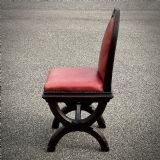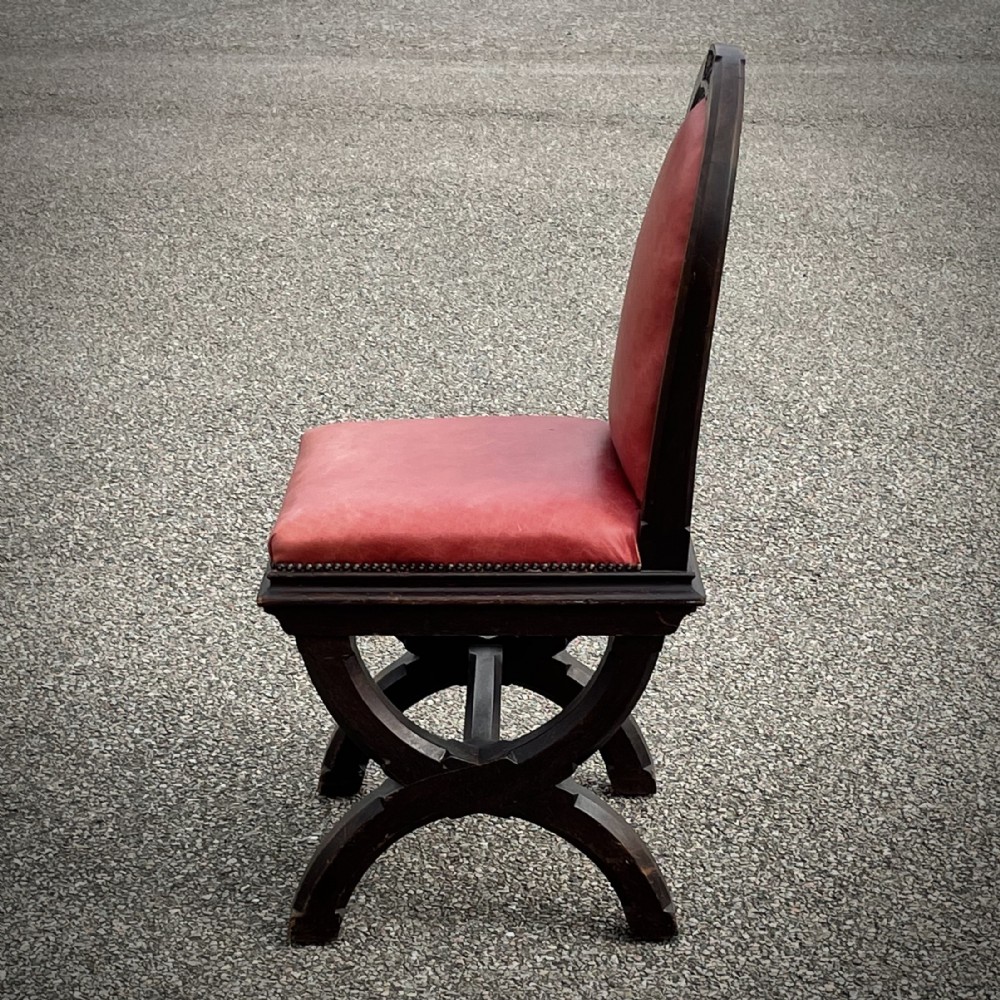 Attractive Antique Gothic Style Leather Chair With X Frame Legs