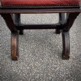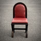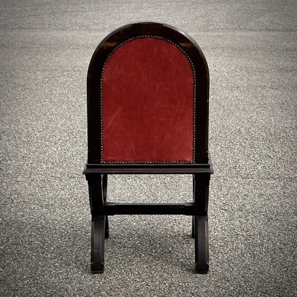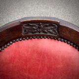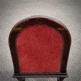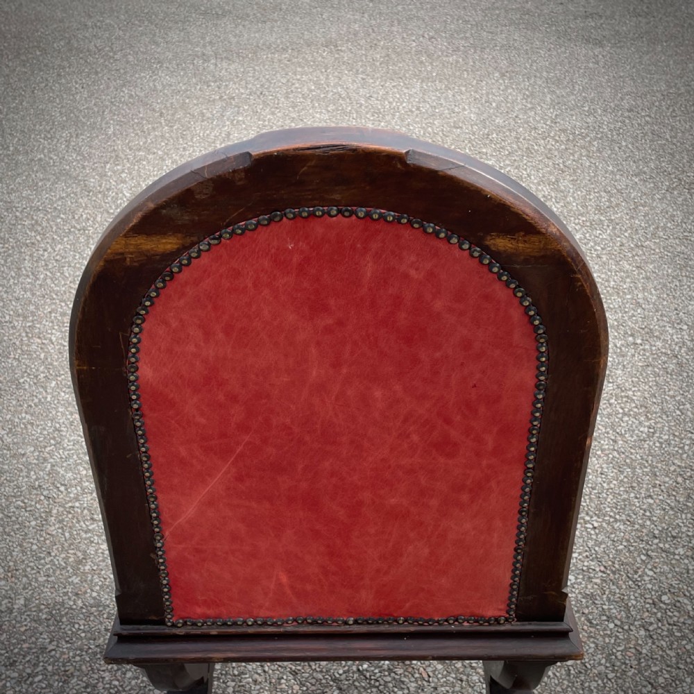 The chair has been upholstered with beautiful red leather with a studded outline.