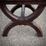 The chair sits on carved X framed legs with a strong stretcher in the middle.