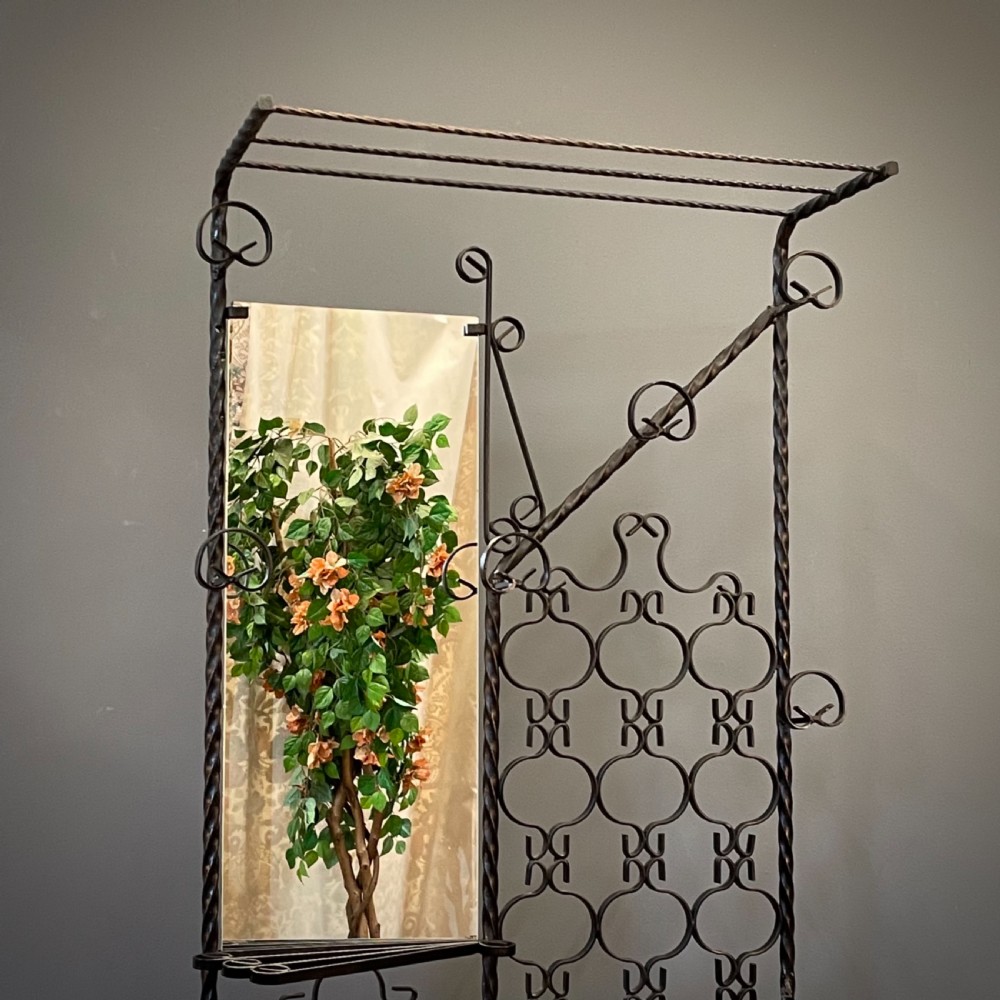 Attractive Vintage Slender Wrought Iron Mirror Back Coat Hanger Hallstand