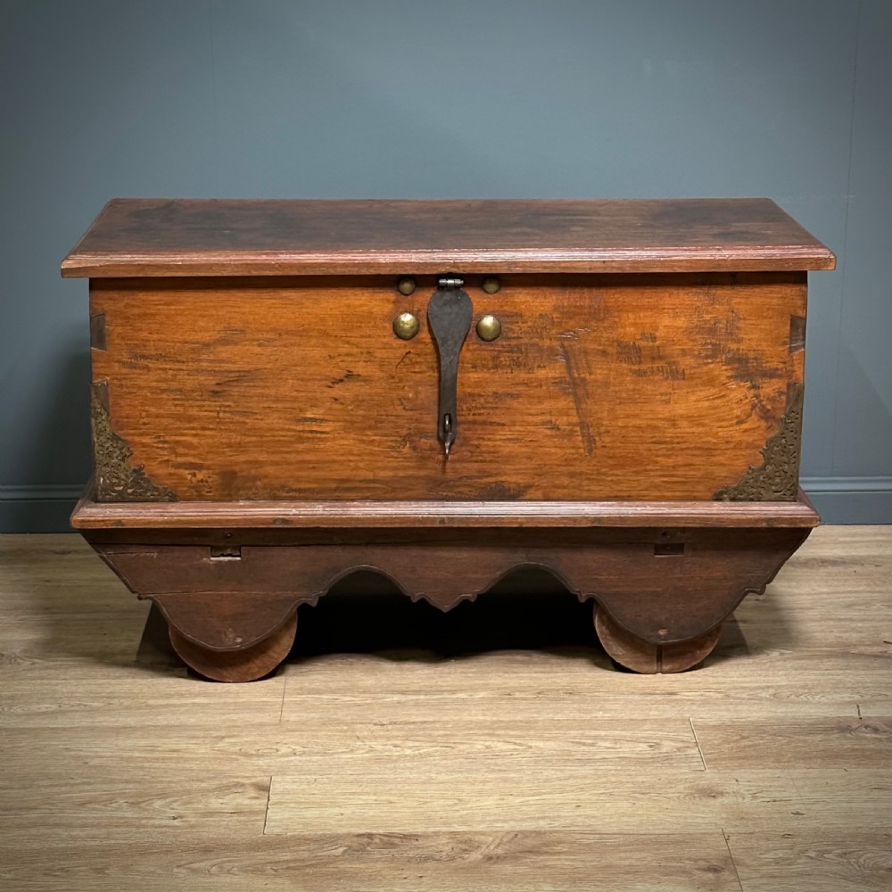 Antique Victorian Large Rustic Teak Gerobog Marriage Chest On Wheels