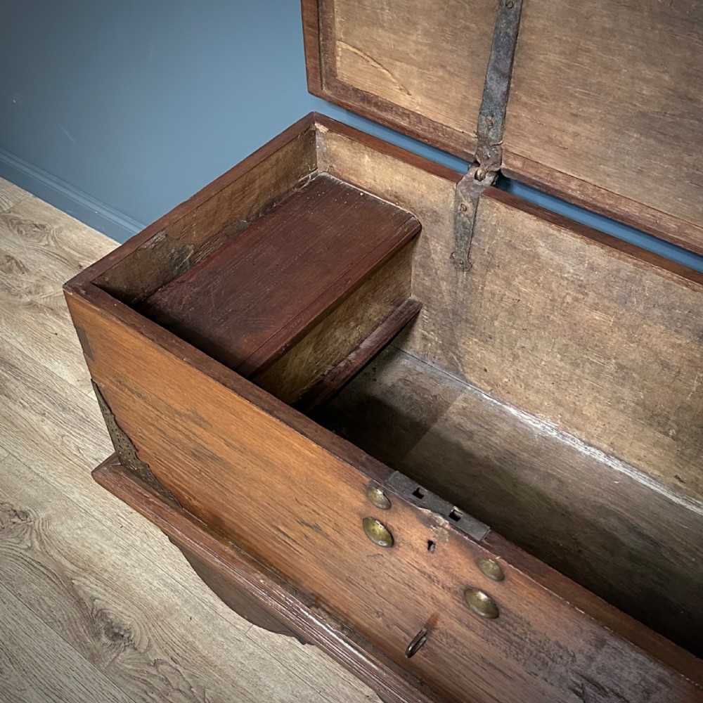 This lovely chest remains in a good usable condition with surface markings commensurate with age and usage. There is some wear, indentations and marks throughout from past use.