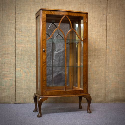 This remains a very stylish and elegant mahogany display cabinet which could house a reasonable sized collection of objects d'art etc. It will continue to provide good service for many years to come.